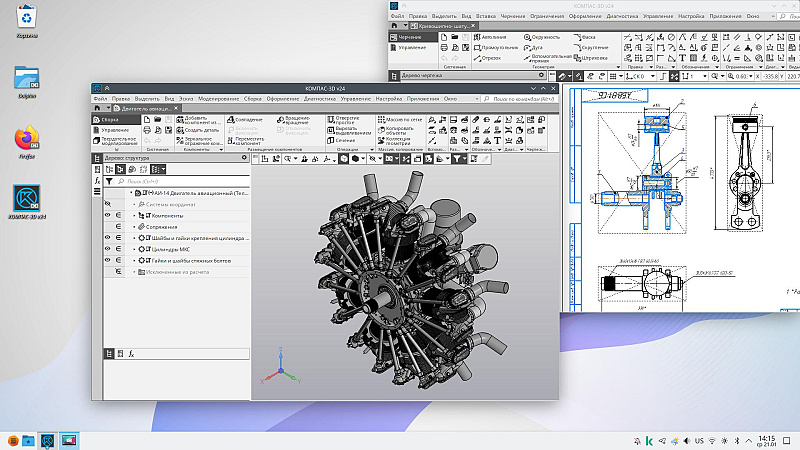 КОМПАС-3D v24 нативно работает в отечественных операционных системах «Альт Рабочая станция» и «Альт Рабочая станция К». Доступны все базовые возможности 3D-моделирования и 2D-проектирования, включая создание 3D-моделей деталей и сборок, чертежей, схем, спецификаций.
